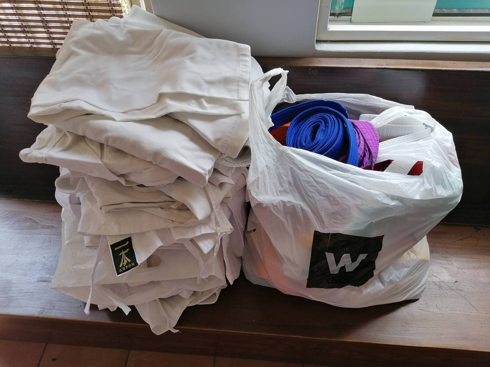 This December, we and our partner dojos, Palm Court Karate and Seishin Martial Arts Academy, were able to send up a number of complete and incomplete karate suits and a little bit of equipment to Sensei Misheck and his students in Epworth, Zimbabwe. The delivery was faciliated by Sensei Nigel, and we are always grateful to him for making space in his luggage to get the suits over the border.